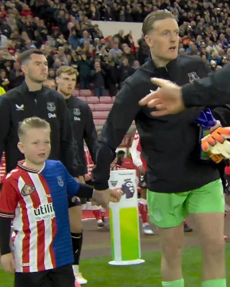 此役皮克福德担任埃弗顿首发门将,他的儿子身穿桑德兰和埃弗顿的拼接球衣入场。