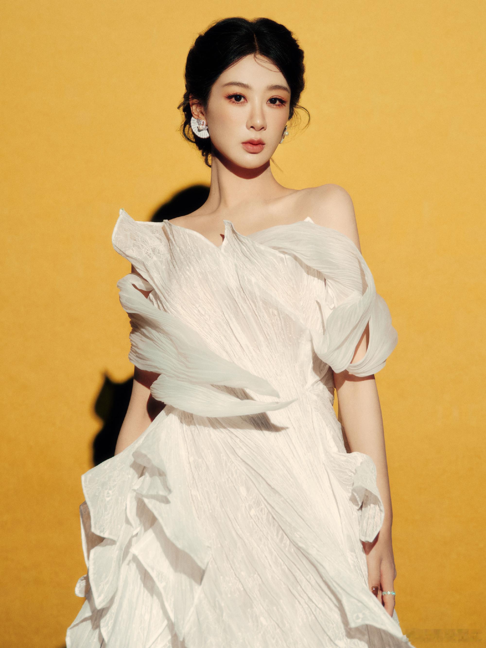 直播新造型继续 ,杨紫身穿上个月刚发布的 HACCHIC 2026 春夏定制系列立体褶皱裙装亮相直播间 ,今天是绽放的玉兰花女神 ~ 🤍