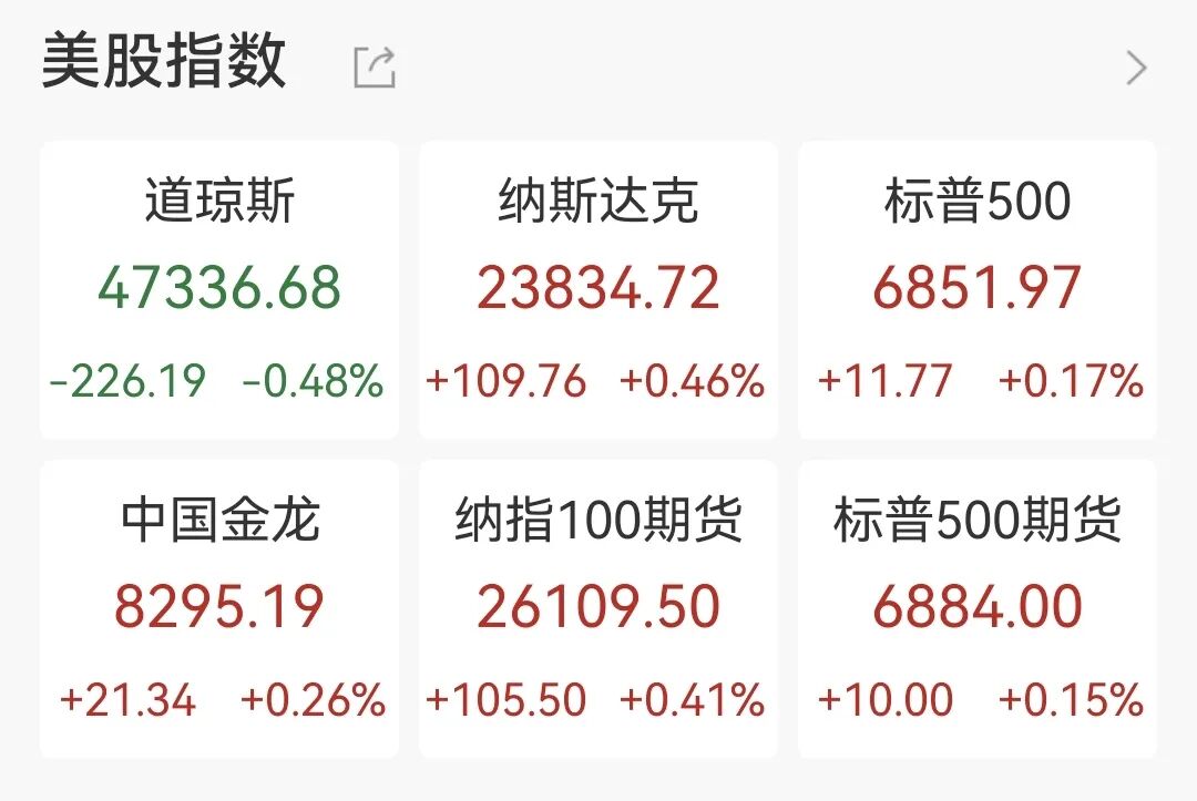 当地时间11月3日,美股三大指数收盘涨跌不一,纳指涨0.46%,标普500指数涨0.17%,道指跌0.48%。欧洲主要股指多数上涨,德国DAX30指数涨0.72%。