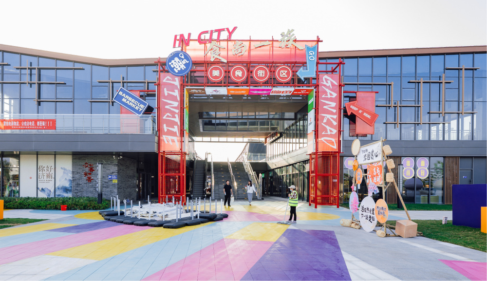 作为鹊山生态文化区(一期)项目打造的城市文化商业综合体,济南泉韵LIVE总建筑面积约2.28万平方米,紧邻园区内的鹊华中新园、泉城名士坊等文旅项目,与黄河大道、济泺路穿黄隧道等交通干线无缝衔接,形成“生态+商业”的复合功能区。