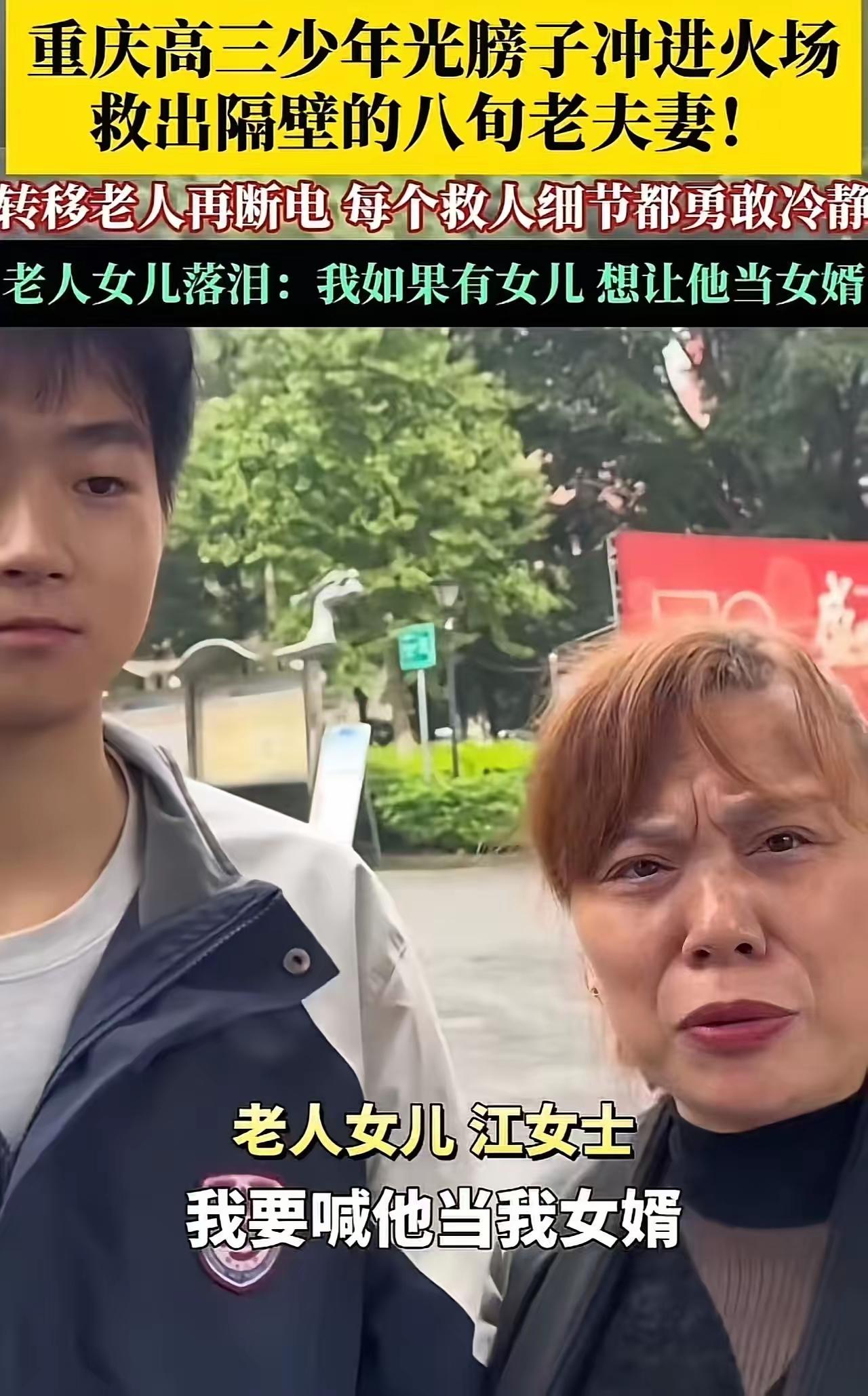 笑死了!重庆高三少年冲进火场救出了邻居大爷大妈,大爷女儿哭着感谢少年时,一句话把大家逗笑了! ​10月16日晚,独居的八旬老人,在家中为轮椅充电时,电瓶毫无征兆地突然起火。 浓烟滚滚,火光冲天,老人被困屋内,情况万分危急。就在这千钧一发之际,住在同一栋楼的高三学生小阳,在闻到焦糊味后第一时间冲了出来。他没有丝毫犹豫,不顾个人安危,用湿毛巾捂住口鼻,逆着人群冲进了火场。在浓烟中,他凭借着冷静和勇敢,成功找到了已经呛得说不出话的老人,并在消防员赶到前,奋力将老人从险境中转移到了安全地带。 当老人的女儿闻讯赶来,看到安然无恙的父亲时,激动得泣不成声。她紧紧握住小阳的手,一边哭一边连连道谢:“太感谢你了,孩子!你真是我们家的救命恩人!我们该怎么报答你啊!” 周围的邻居也纷纷围了上来,对这个勇敢的少年竖起了大拇指,称赞他是“少年英雄”。 就在这感人的氛围中,老人女儿擦了擦眼泪,对着小阳无比真诚地说道:“孩子,你是哪个学校的呀?我要给你送锦旗!还要给你们学校写感谢信!一定要好好表扬你!” 小阳被大家夸得有些不好意思,正准备谦虚几句。 谁知,老人女儿话锋一转,带着哭腔却又无比认真地说出了下一句:“……这样你高考是不是就能加分了?” 话音刚落,在场的所有人都愣住了,随即爆发出一阵善意的笑声。刚刚还紧张又感动的气氛,瞬间被这句朴实又实在的话给冲淡了。大家笑着说,这真是“中国式感谢”,把最实在的好处都想到了。小阳也被逗笑了,连忙摆手说不用不用。 这声笑,不仅是因为这句话的幽默,更是因为它背后那份真挚而朴素的情感。在危难面前,少年展现了超越年龄的勇敢;而在感恩之时,家属则用最实在的方式表达着谢意。一勇一谢,共同谱写了一曲温暖的城市赞歌。