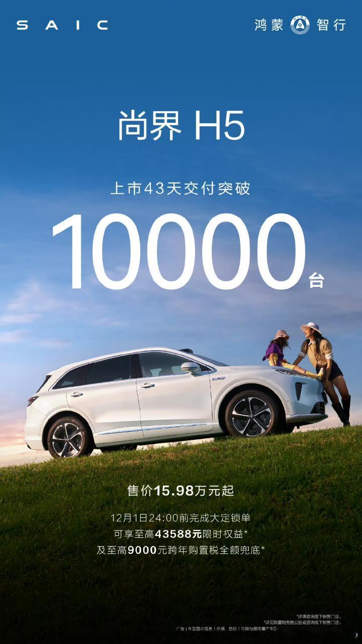 上市43天,交付超10000台尚界H5的销量和我前天通过上汽月度产销快报推算出来