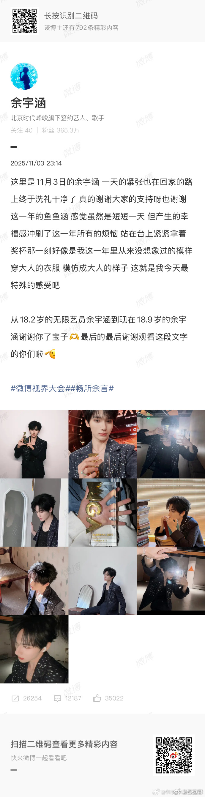 本就很喜欢余宇涵,余宇涵穿大人衣服模仿大人样子 现在更觉得他珍贵!18岁的年纪学着承担,不管哪个阶段的他,都在闪闪发光,继续冲啊!