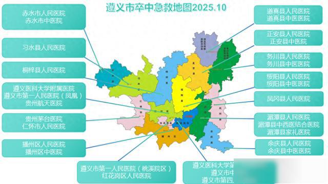 脑卒中是我国致残、致死最常见的疾病,但可防可治,前提是能够在发病的第一时间得到救治。遵义市在脑卒中诊疗体系建设及急救能力提升方面持续发力,不断更新脑卒中急救地图,旨在让市民们更快抵达具有救治能力且最近的医院,从而降低致死、致残率,改善预后而获益。2025版脑卒中急救地图整合全市现有综合救治急性脑卒中能力的医院、院前急救系统以及各级卒中中心(共97家),市民朋友可选择保存收藏。