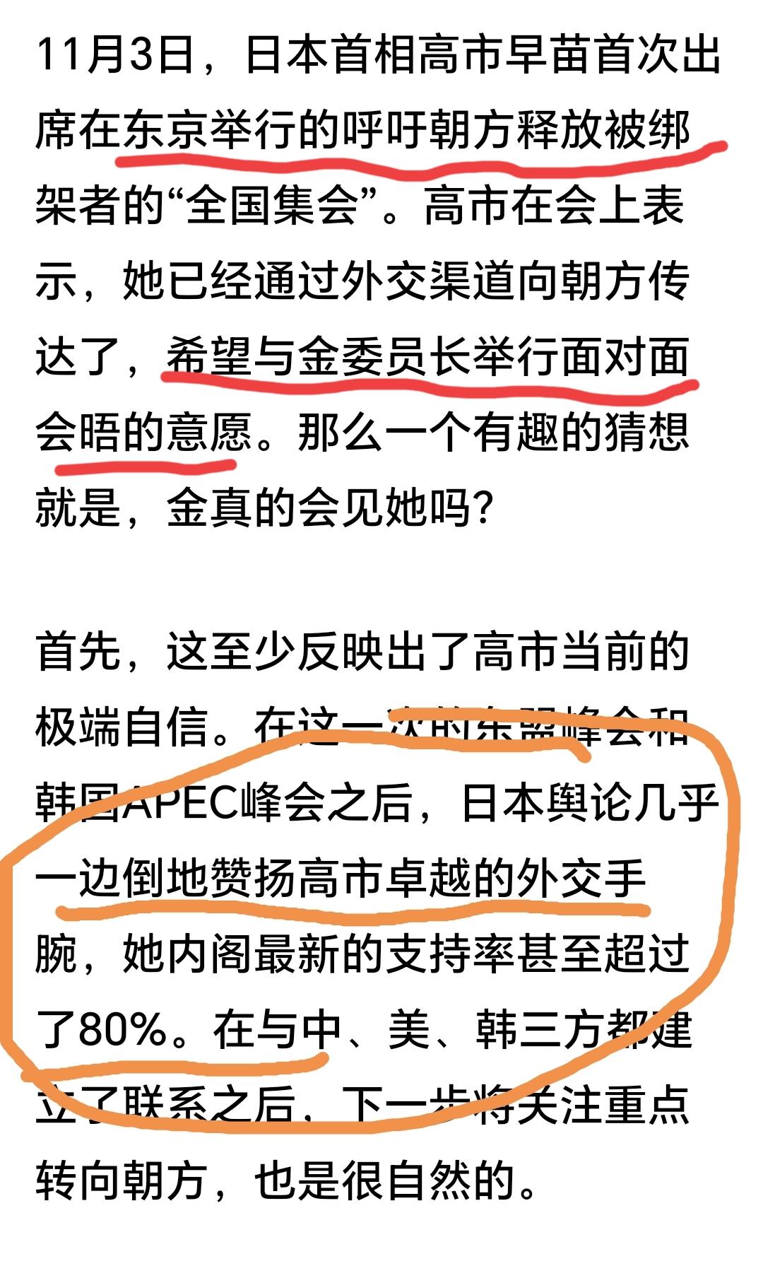 果然我们的观感和小八嘎自己的看法是大不相同的,道德价值观真不一样啊。当我们还在嘲讽搞事早夭“花痴外交”像个夜总会妈妈桑时,小八嘎们却觉得她真厉害表现得真优秀,内阁支持率居然上到80%。 以至于她现在自己感觉也挺良好,内阁总理大臣轻松拿捏。所以她现在准备和金将军对话了。 猜猜金将军会理她吗? 不急,让子弹飞一会儿。 点右上角关注我,我们一起去看这个魔幻的世界