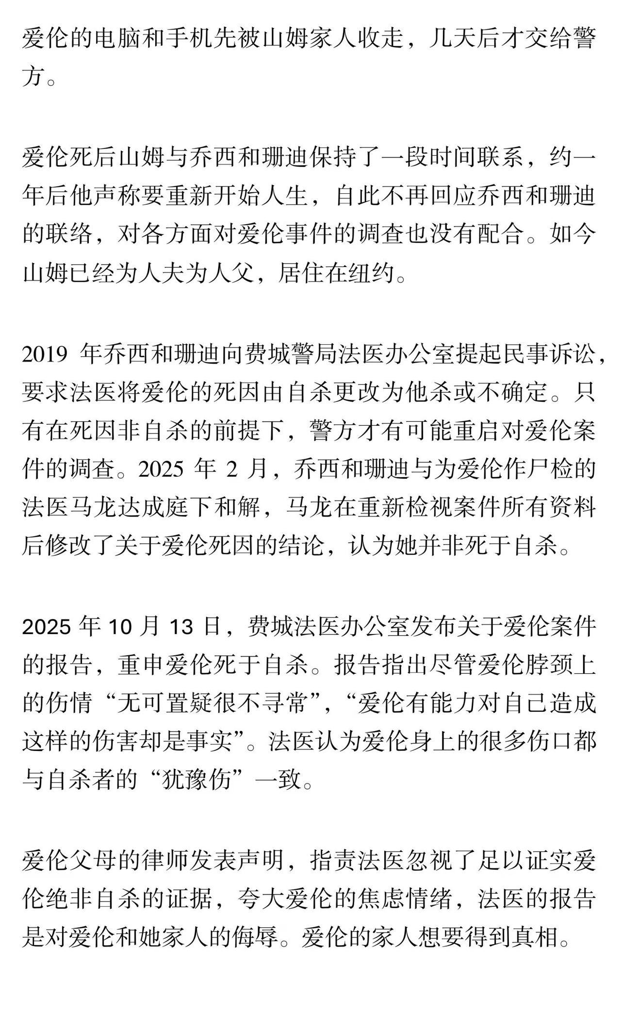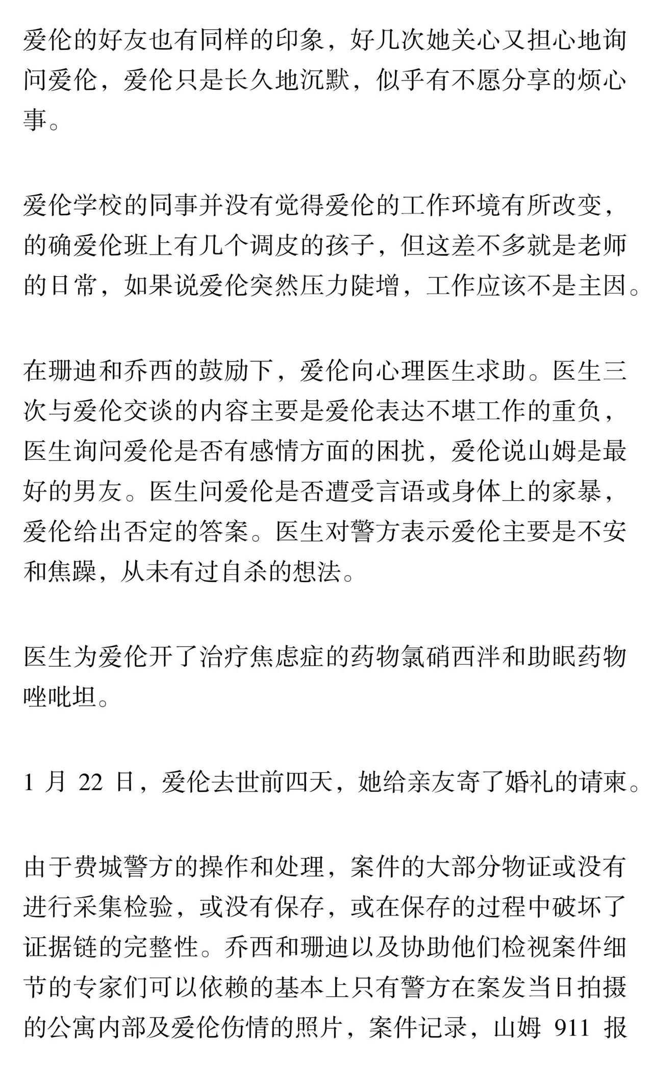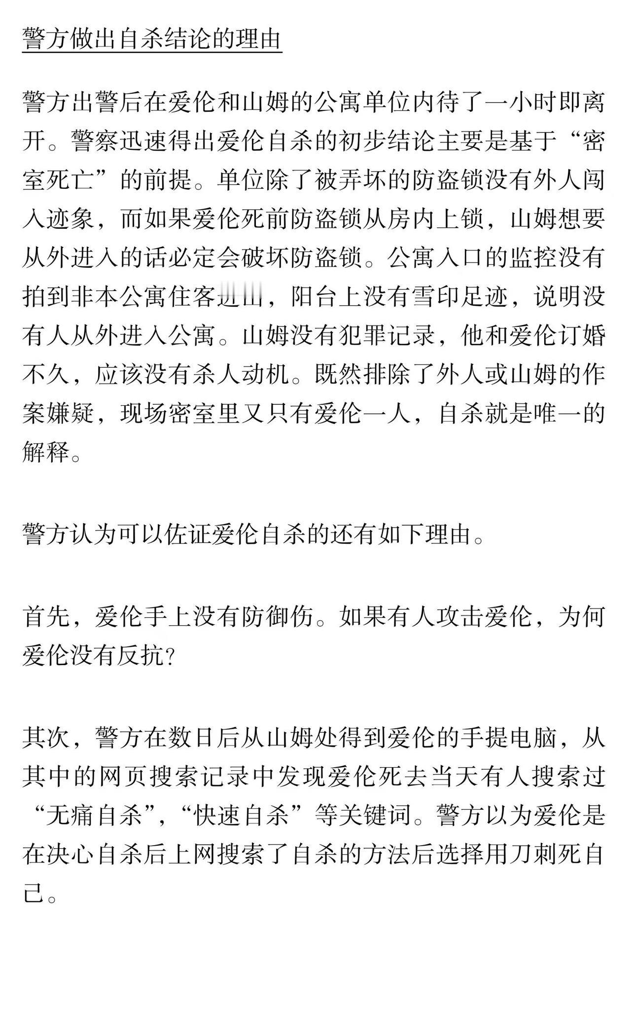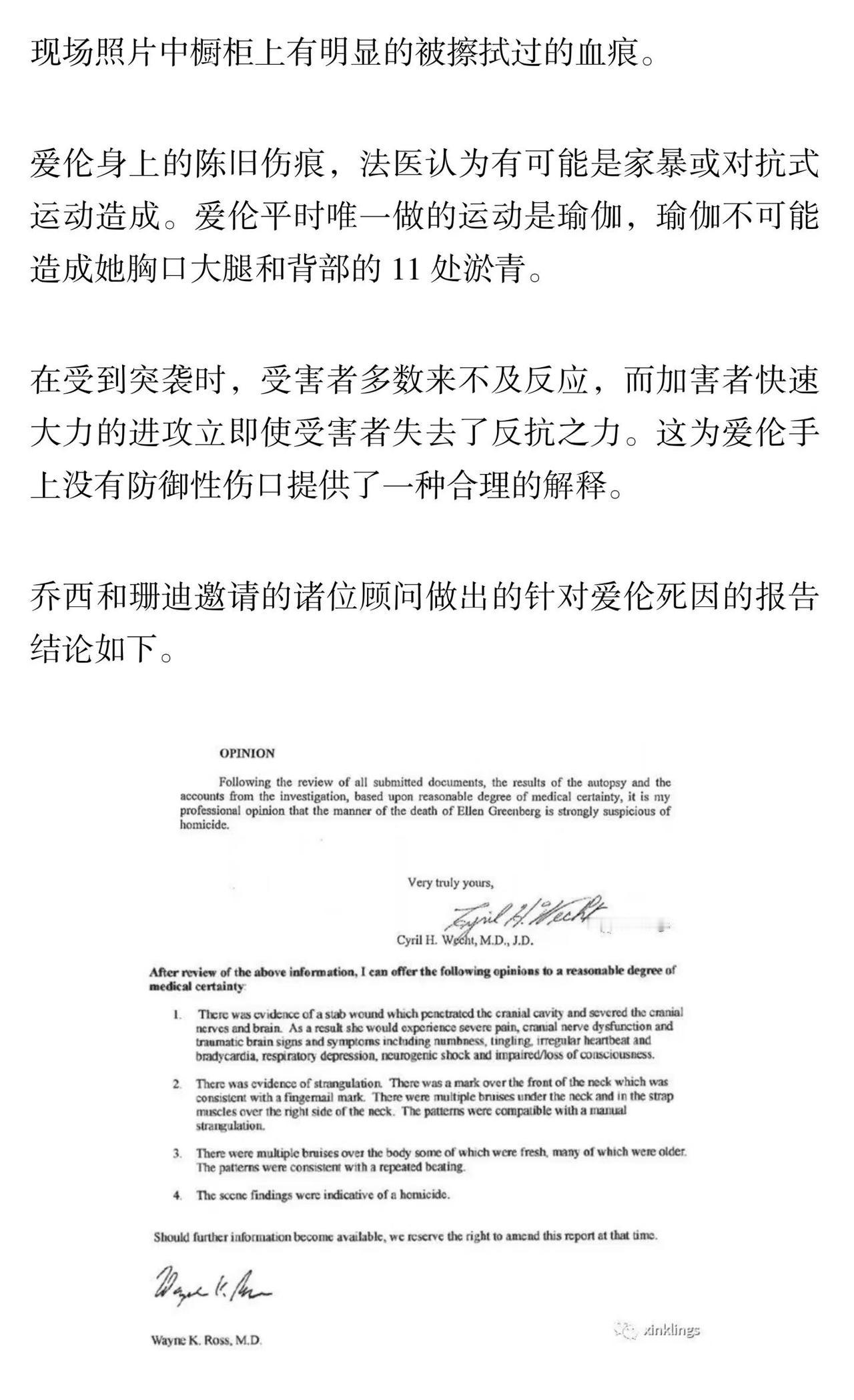 不可能完成的自杀 标号为T的位于C2C3节颈椎的伤口损伤脊髓,爱伦在被刺入这一刀后应该已经丧失行动能力,更严重的状况是已经昏迷,爱伦完全不可能在瘫痪或昏迷中再用刀刺进胸口,造成标号为E的致命伤。