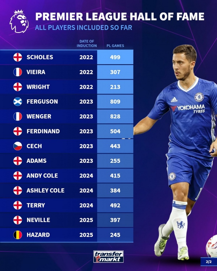 直播吧11月4日讯德转盘点了英超联赛名人堂成员的英超比赛参与次数,具体如下: