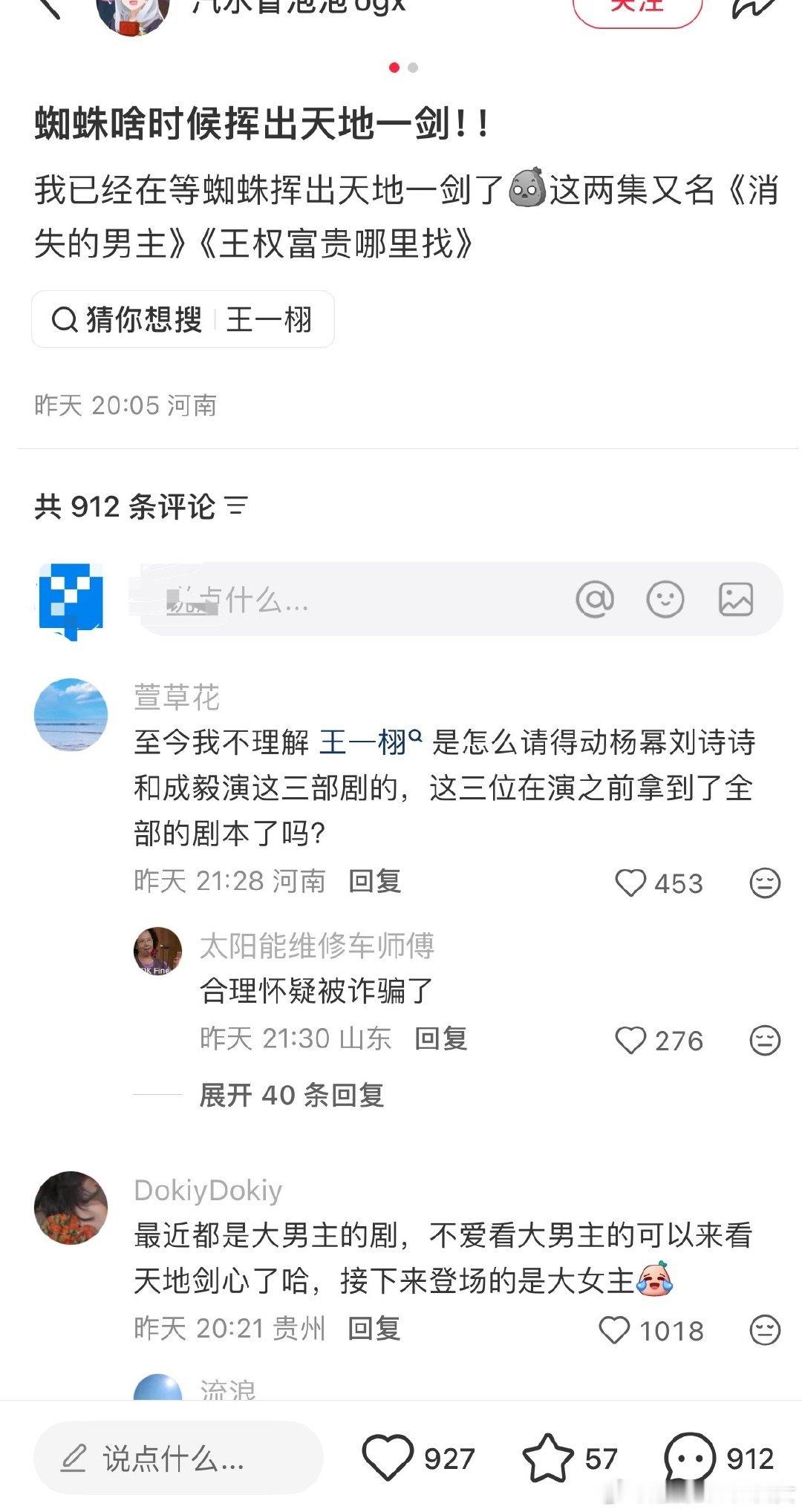 📕天地剑心tag现状:“不爱看大男主剧的可以来看看天地剑心,现在登场的是大女主