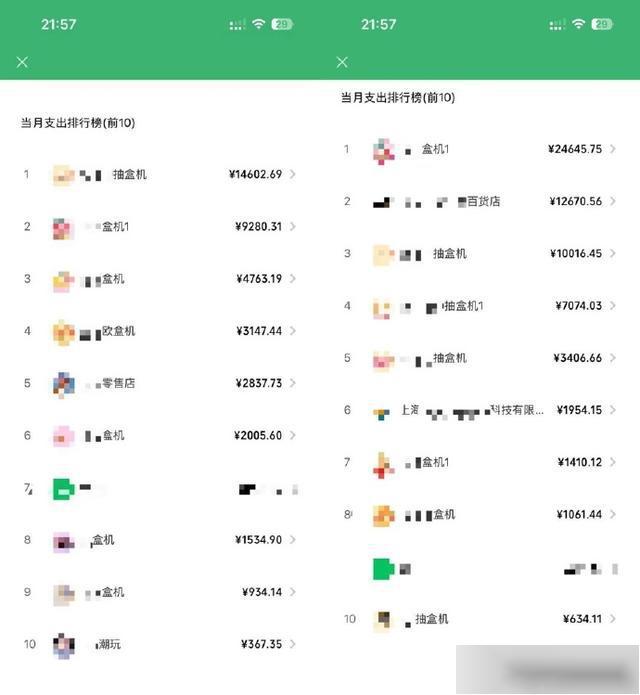 而当到了记者与熊女士约定采访的时间,熊女士却“失联了”,事后她告诉记者,由于玩抽盒机亏损了17万,还欠下了外债,当天下班后“跑外卖跑了一晚上”,而在她的身边,亏损十几万甚至上百万的大有人在,不少人负债累累。“9月11日,我决定再打打看,一开始就什么也没抽到,直到两小时后我花掉了3万块,那时候我拉出了所有的账单,才发现这三个月花销不是我以为的几万块,而是20万,我就再也没玩过了。”玩抽盒机的经历就像做梦一样,直到看到账单的那一刻熊女士才清醒:“我得到的只有空气!”