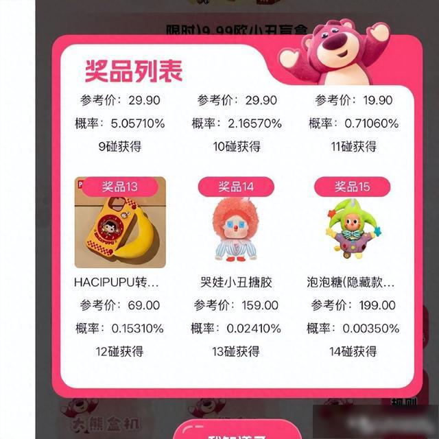 比起抽中奖品,有消费者的追求其实是这种游戏模式带来的快感。“就是纯粹想赌,打出的奖品也会‘碎掉’兑积分继续赌。”消费者许女士前后在各类抽盒机小程序消费12万元,熊女士则投入了约21万元,在她们看来,盒机玩家花费上万元很普遍,甚至有人花费200万元在抽盒机上,一开始进入游戏是为了抽取奖品,当沉浸在概率微小的中奖喜悦中,玩家的追求变成了享受“中奖的快感”。