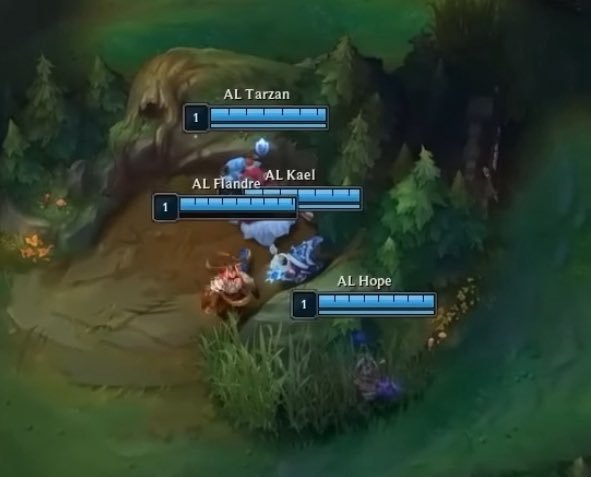 直播吧11月4日讯Oner在与AL的淘汰赛决胜局选出零熟练度蒙多打野;决胜局一开始AL五人在红buff野区站位防止Oner入侵,但这是Oner在河道草丛罚站看蒙多这英雄的技能描述...(有接近20s没动)
