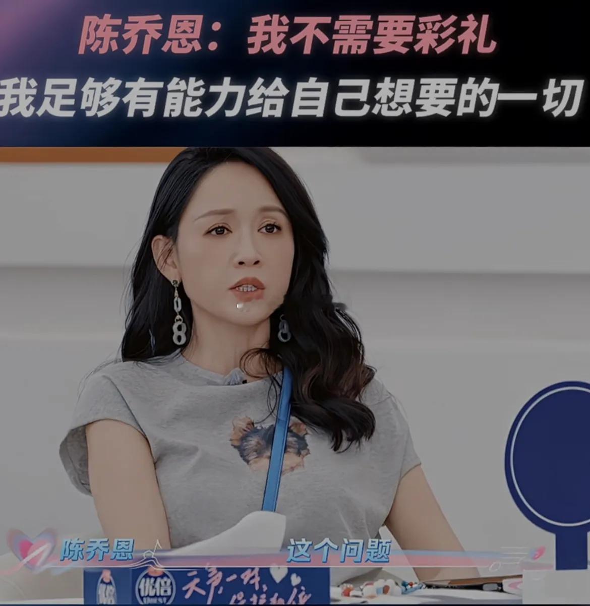 陈乔恩说:“我要等到自己有足够的话语权,经济基础足够独立之后,才会考虑结婚。我不需要对方家给任何彩礼,也不用准备什么东西。”
