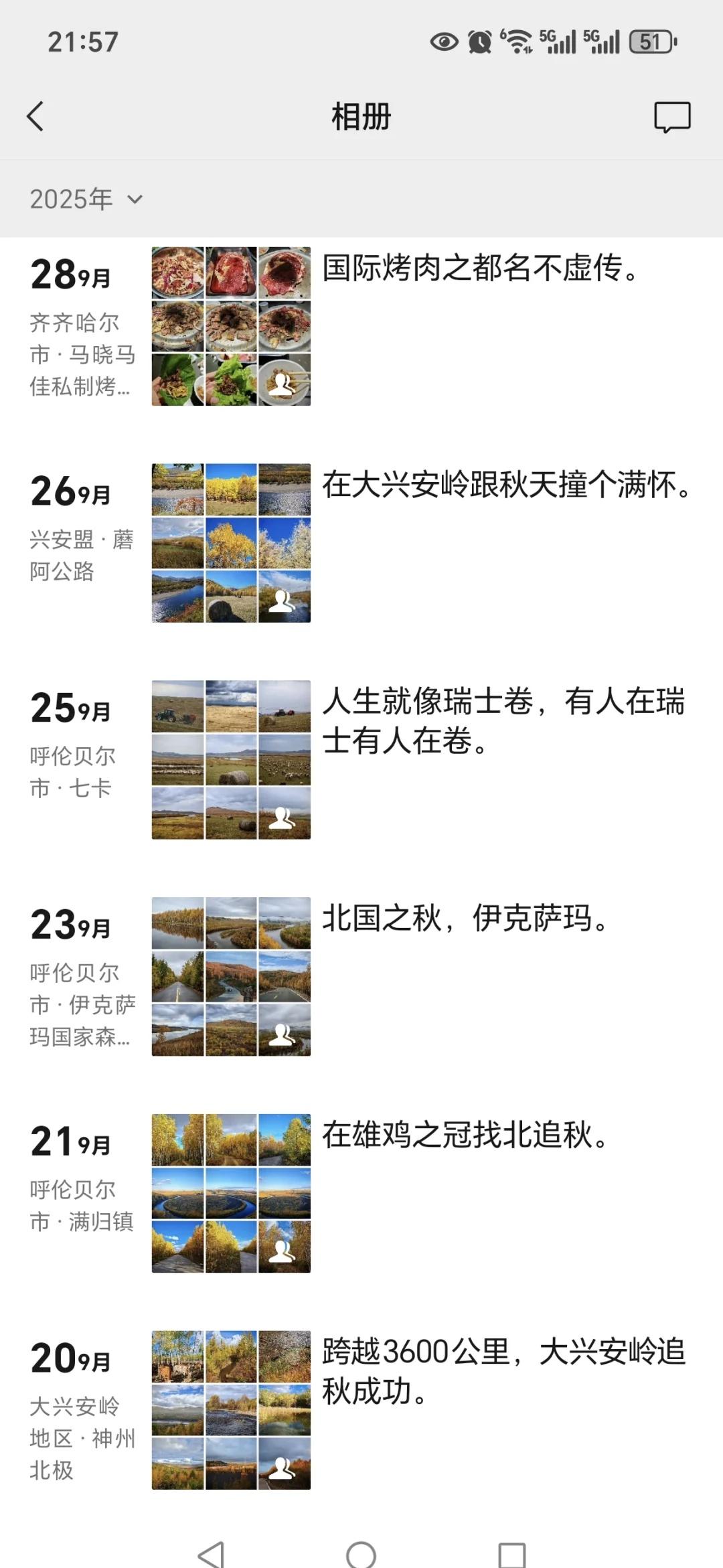 穷游达人又想出去自驾游了 只要没事就想出去自驾游,自带车哪里都可以去,自定义路线自定义起止点,省钱大交通方案,啥都懂,跟着我玩不用带脑子,最关键还省钱,我虽然很喜欢外出,但是不会在旅游上面花太多,能省则省。历史自驾行程如下,费用均为长沙起止包含往返大交通。 - 目前战绩: 25.10 九寨沟及周边(6天1500) 25.9 大兴安岭追秋(11天2587) 25.6 新疆天山环线(8天3119) 24.11 九江景德镇黄山环线(7天0) 24.6 云南滇西北环线(11天2558) 23.9 西藏阿里大环线(18天5531) 23.6 呼伦贝尔小环线(7天2405) 22.11 阿坝小环线(7天2760) 出行攻略 想出去旅游 旅游爱好者