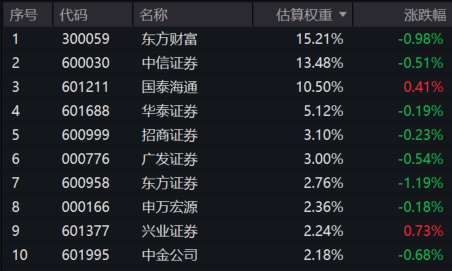 证券ETF龙头(560090)标的指数成分股方面涨跌互现,兴业证券、国泰海通等微涨,东方证券跌超1%,东方财富、中信证券等跌幅居前。
