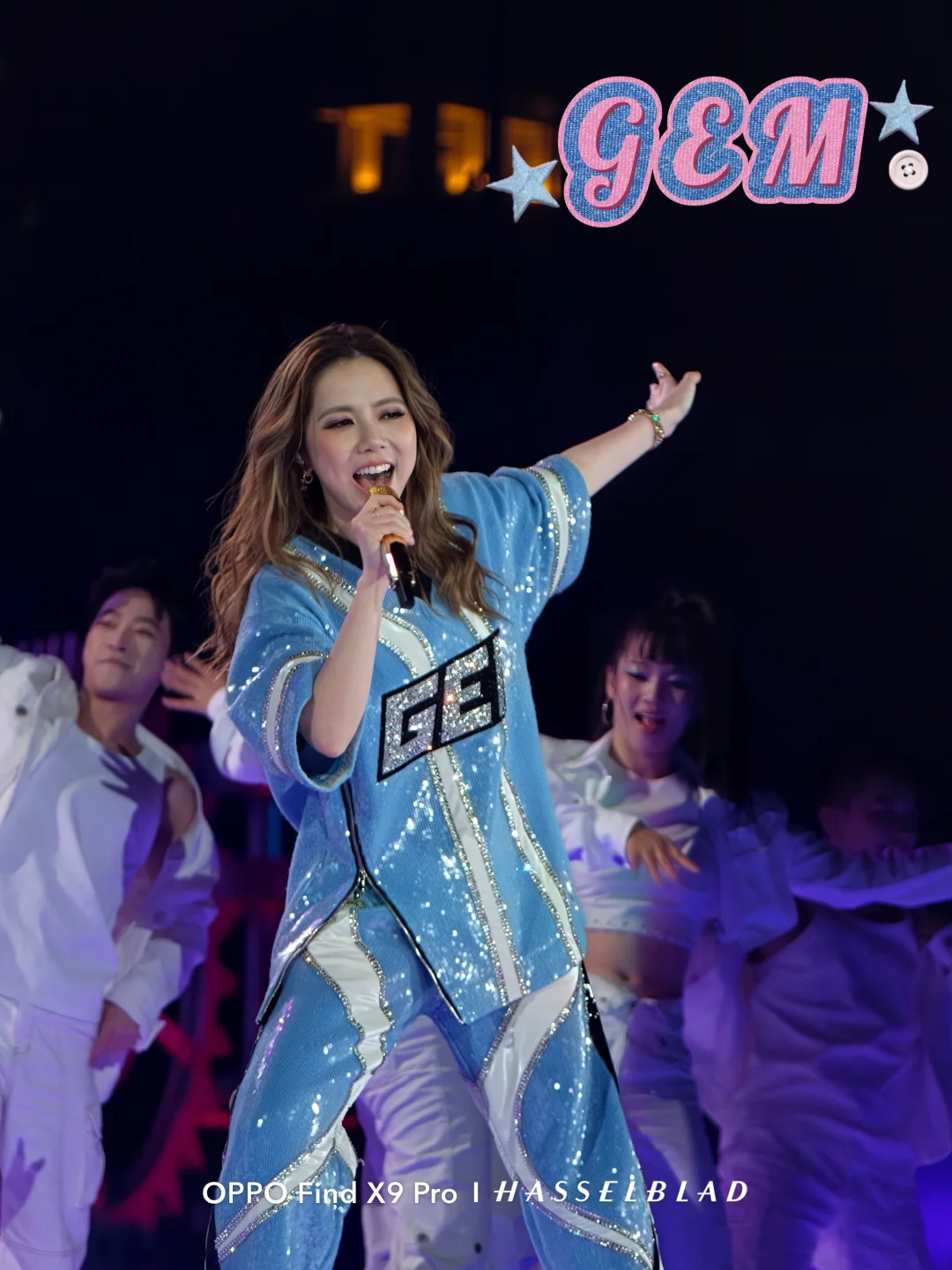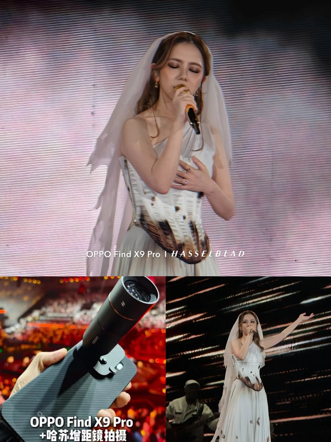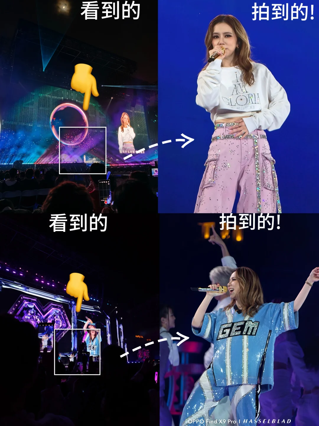 从《喜欢你》过渡到《差不多姑娘》,邓紫棋大胆融合摇滚与交响乐,观众随节奏跳跃、随旋律摇摆,情绪层层推进,而在《泡沫》前奏响起时,全场荧光棒转为淡紫色,六万人同时点亮手机手电筒,体育场瞬间化作一片星海,手臂如波浪起伏,合唱声里是无数人与她歌曲共鸣的青春!这样的现场,用OPPO Find X9 Pro记录再适合不过,它的专业防抖在跳跃画面中依旧稳定,哈苏增距镜让手机秒变“相机”,即便坐在后排,也能清晰捕捉舞台上的邓紫棋与满场星光!