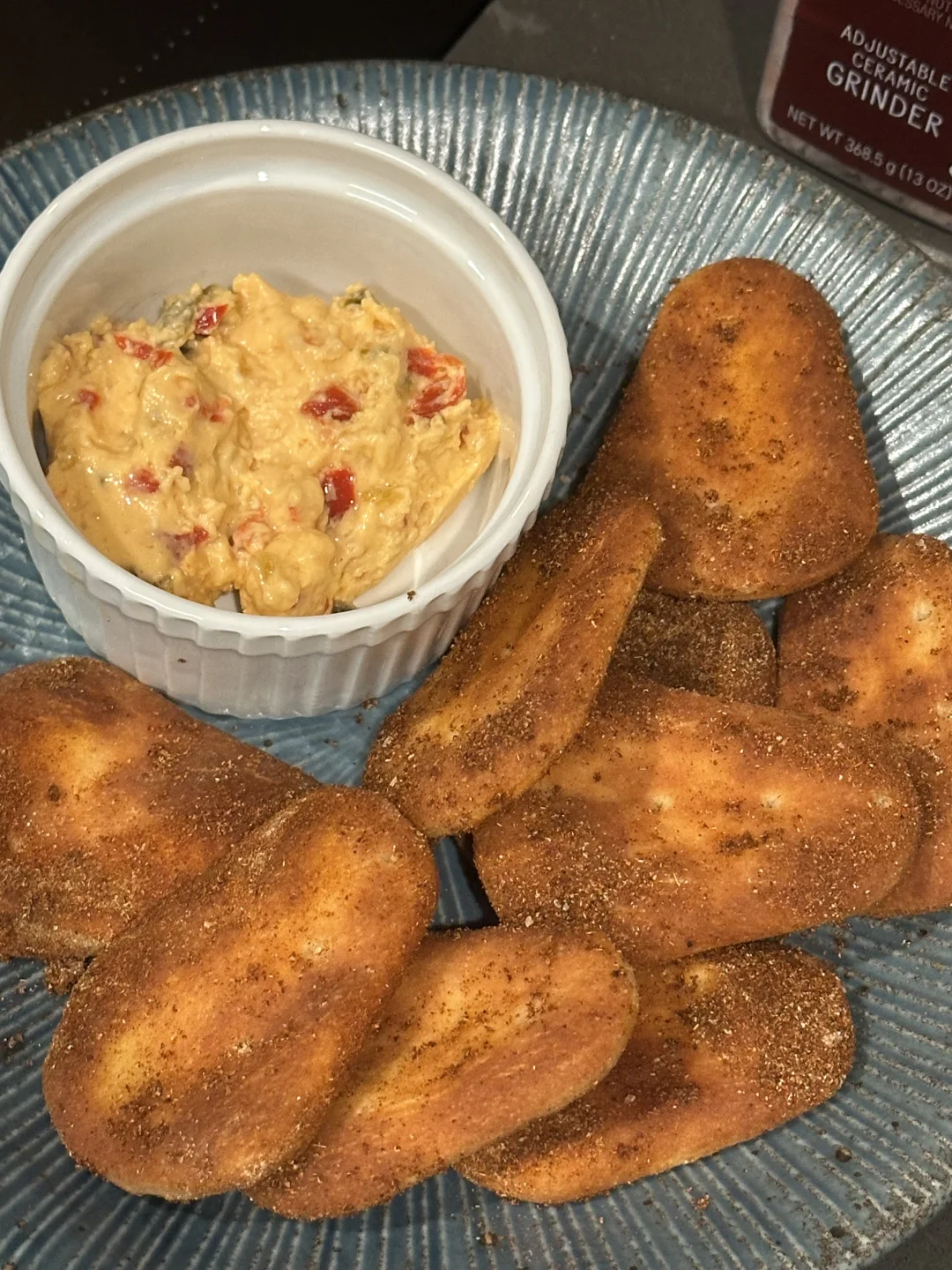 我搭配了缺德舅新品pepper dip,你也可以根据自己喜好蘸guacamole,hummus等。