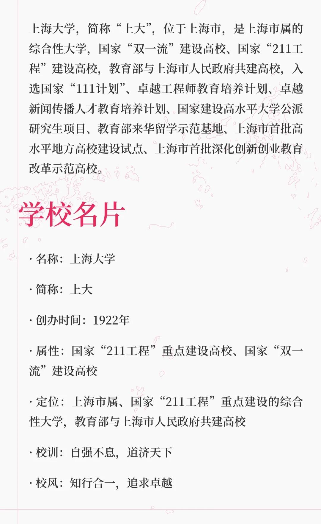老陈说高校壹佰伍拾陆期之上海大学 上海大学是上海市属“双一流”高校,涵盖工、理、文、法、经、管、艺等12个学科门类,拥有“211工程”和“双一流”建设,重点学科包括材料科学、机械工程等,致力于培养创新人才,服务地方和国家战略。高校 大学 院校规划上海大学 上海高校 院校推荐 院校选择