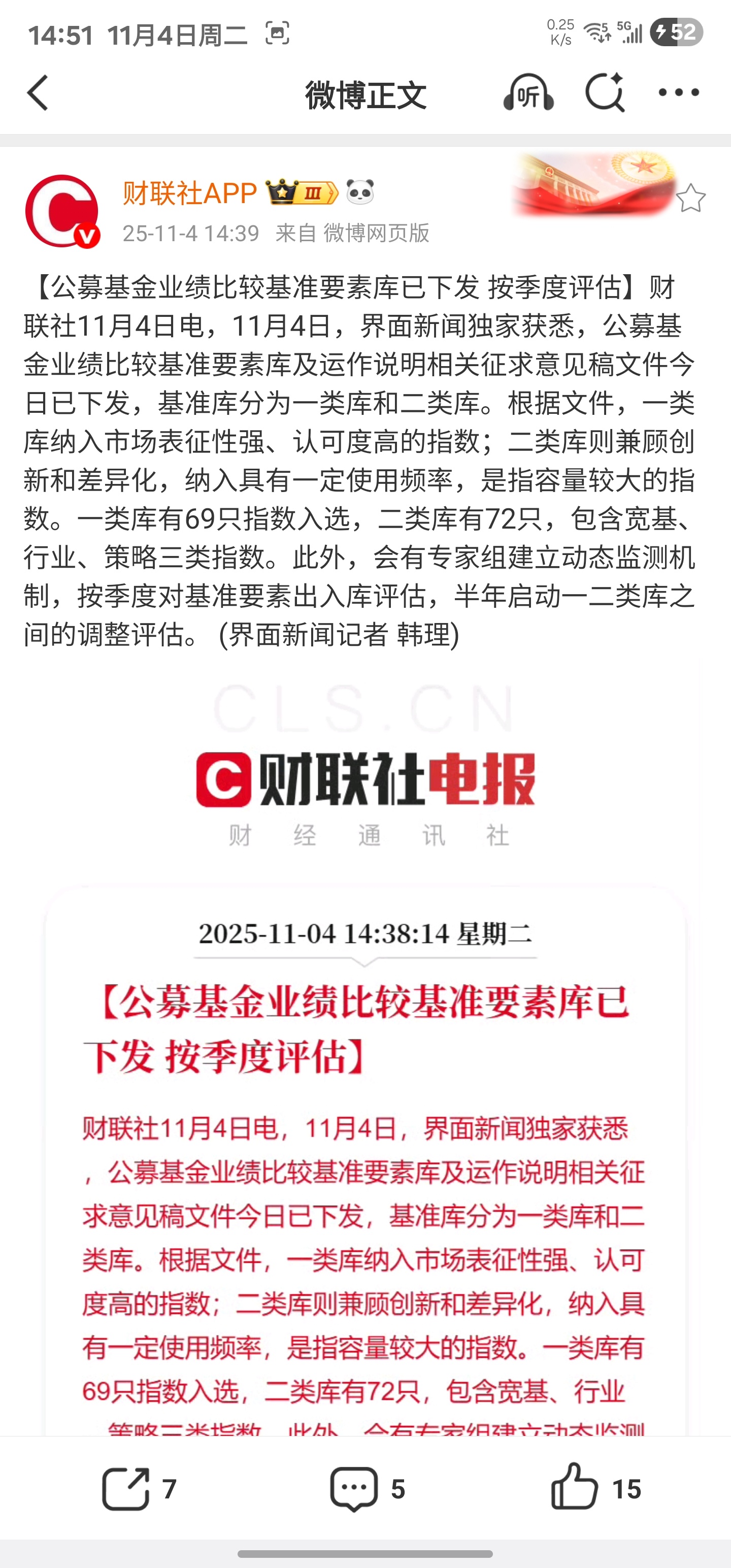 也就是说之前已经存在的基金和以后要发行的基金,业绩基准都要从库中选择,且基金发行运行后短期不能更改比较基准。