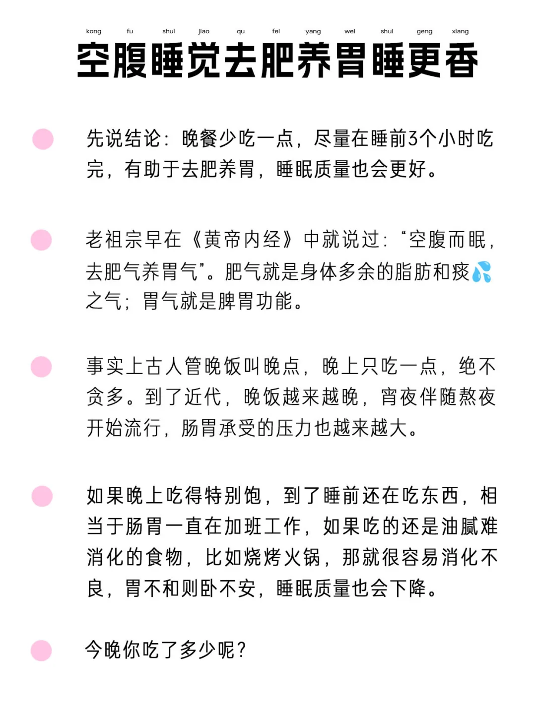 在轻养生 中式养胃计划 健康科普 健康养生 我的健康生活 保持空腹感 睡眠充足也是养生 饥饿感入睡 生活习惯改善