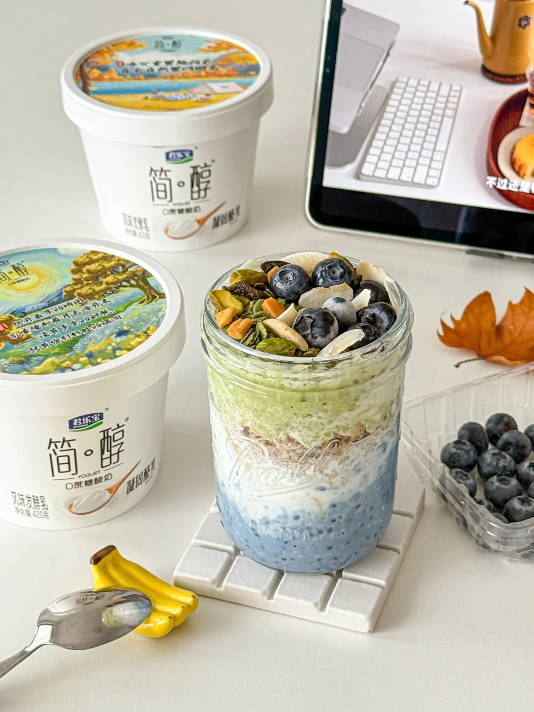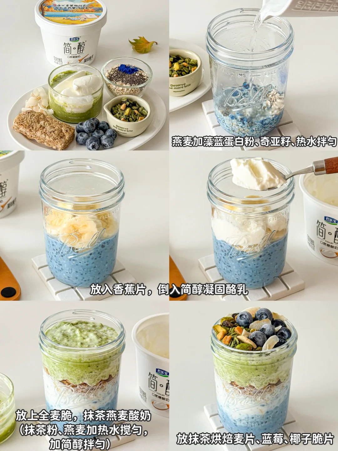 燕麦|藻蓝蛋白粉|奇亚籽|香蕉|简醇凝固酪乳|抹茶粉|抹茶烘焙麦片|蓝莓|椰子脆片