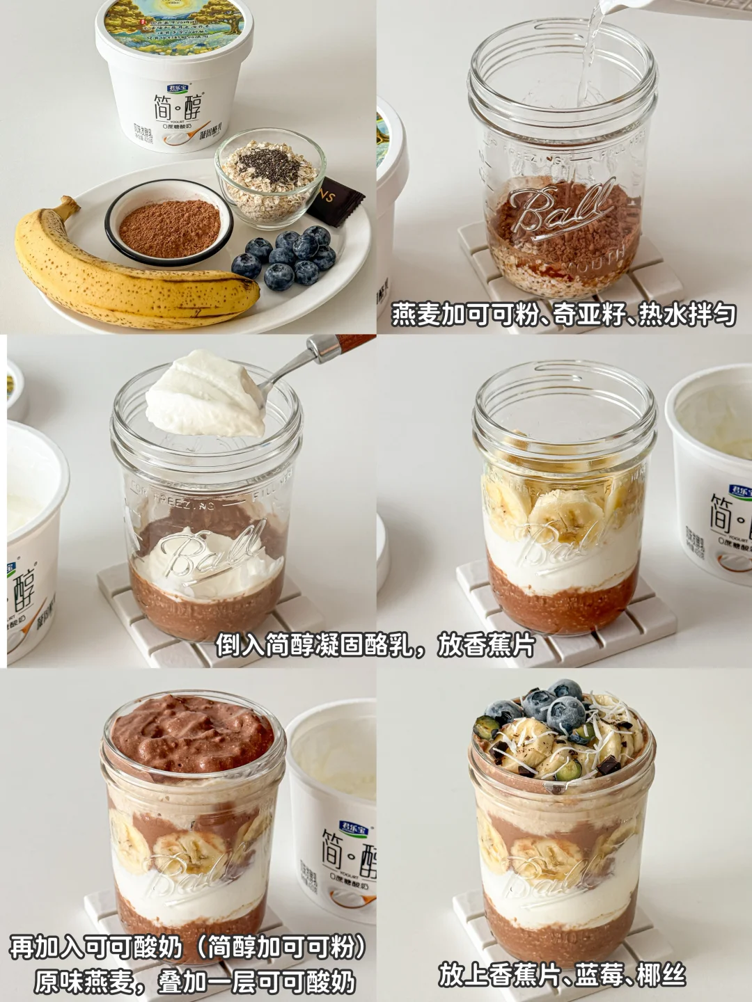 燕麦|可可粉|奇亚籽|香蕉|简醇凝固酪乳|蓝莓