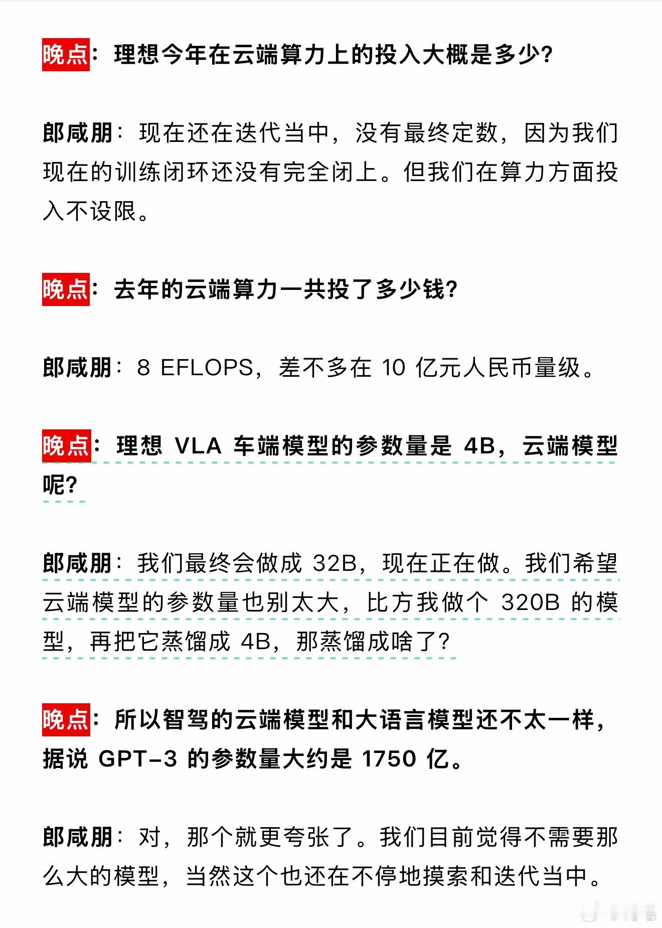 ❷理想去年投入大概8 EFLOPS,差不多在 10 亿元人民币量级,但在算力方面的投入是不设限。