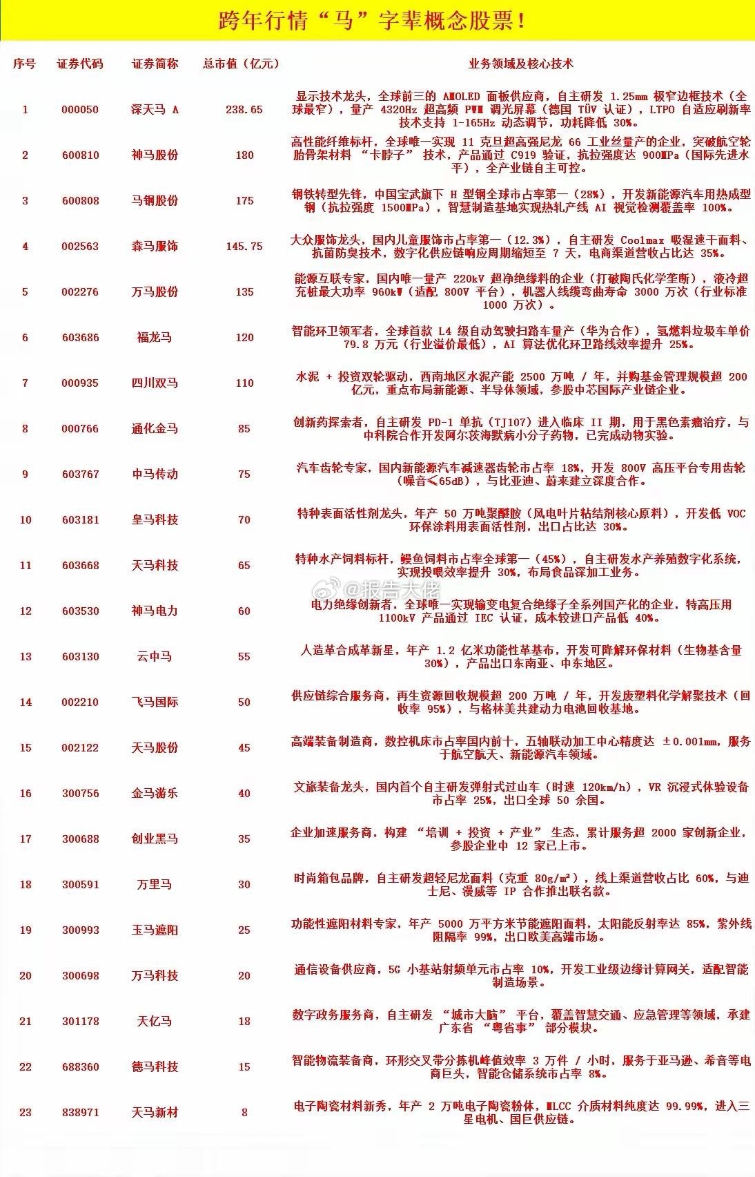 马字辈之核心个股