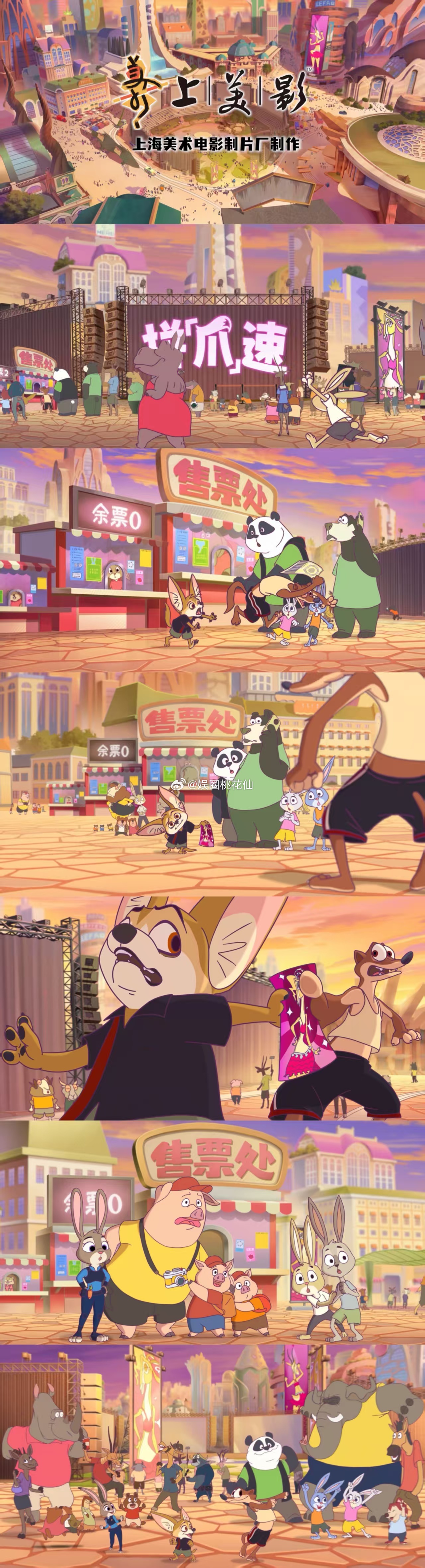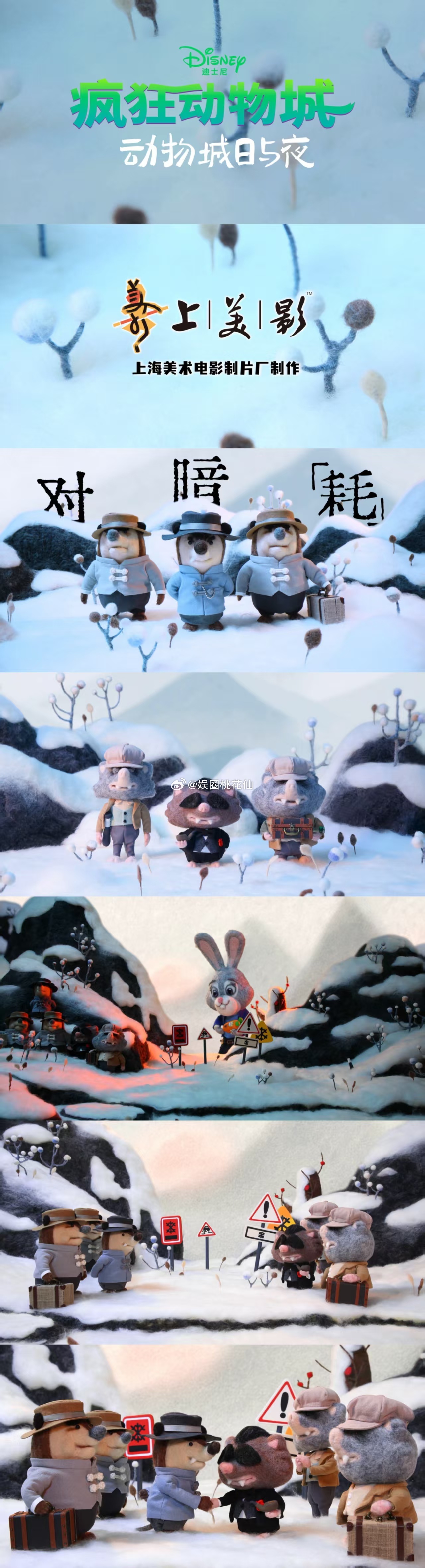 八倍镜打开动物城的日与夜 动物城日与夜短片以四种东方美学呈现日常琐碎,清晨立牌,午间预报,傍晚抢票,凌晨数羊,每个片段都藏着巧思,朱迪的胡萝卜笔记录时光流转,豹警官软萌亮相,羊副市长幽默失眠,让人会心一笑更期待第二部