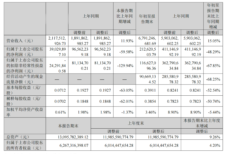 财报显示,公司前三季度毛利率为21.83%,同比下降3.83%;其中第三季度毛利率21.31%,同比下降3.97%。同时,前三季度麦格米特应收账款达24.79亿元,同比增长7.99%。