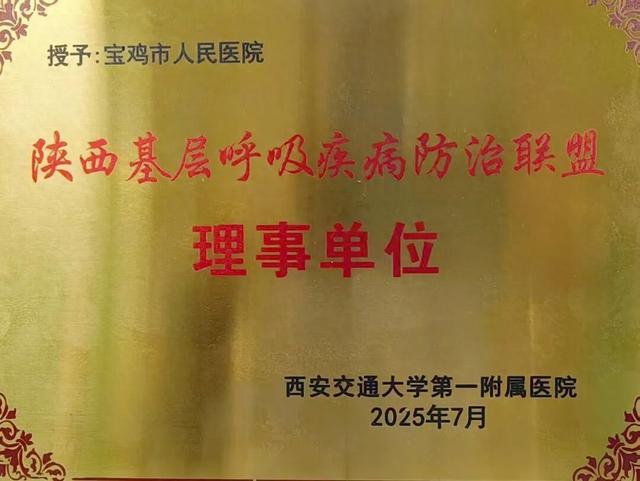 喜讯!宝鸡市人民医院获任陕西基层呼吸疾病防治联盟理事单位,王惠霞教授受聘为联盟委员