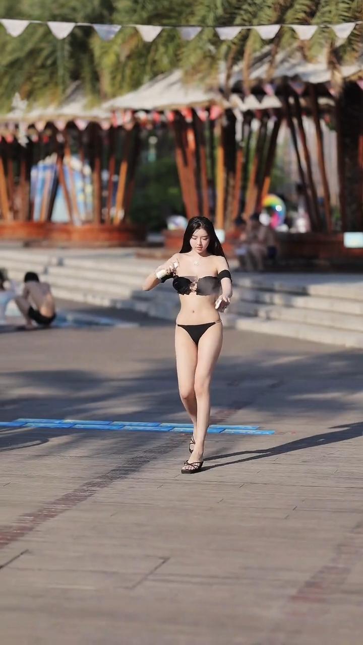美女这是在什么地方?穿得这么清凉。身上是在喷什么嘛?看这样子应该是去水上乐园玩吧
