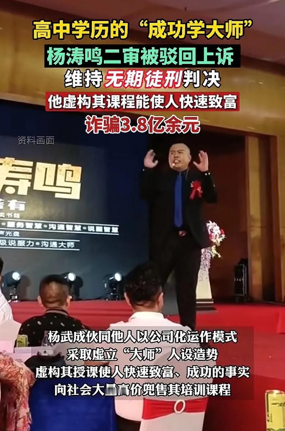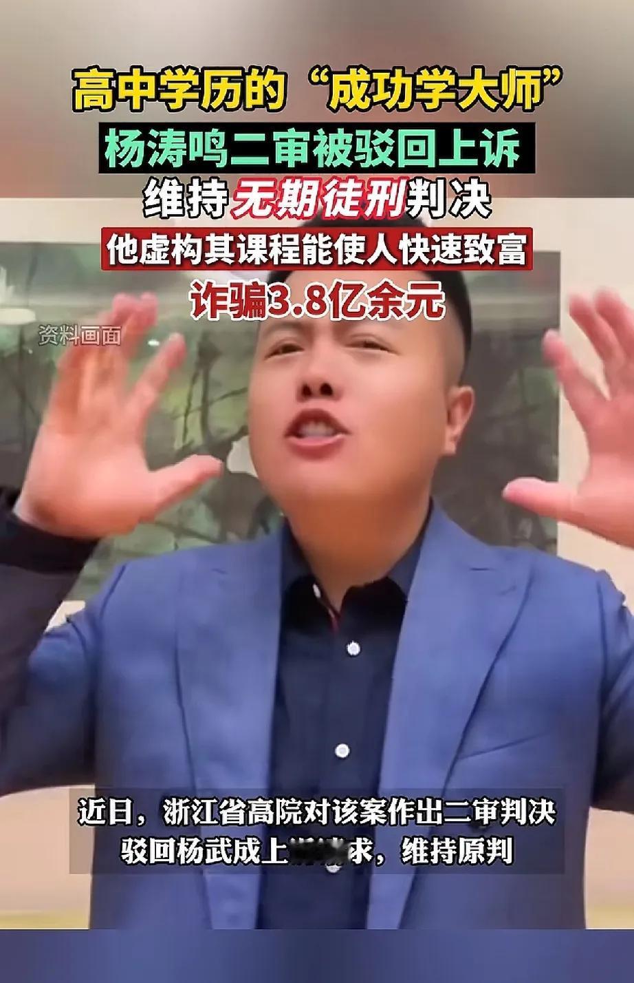 难怪这两年,成功学大师少了很多 原来已经有大师提前进去了 就是这位潜能激励大师忽悠了别人致富搞了3.8亿,然后被判了无期 看了这事我还是很惊讶的 过去觉得这些玩意整天在那胡说八道会有人信么,真有人报课么,总觉得台底下都是托 没想到啊,还真让他忽悠到钱了 3.8亿! 太可怕 到底是骗子太厉害还是傻子太多 还有之前那些,啪的一声,背叛我的人就给他100万,听懂掌声 那几个最近好像也没消息 不知是不是也进去了 成功然后还可以快速致富 哪个憨憨会告诉你 告诉你的时候这事就已经不赚钱了 真赚钱的事那都是闷声发大财呢