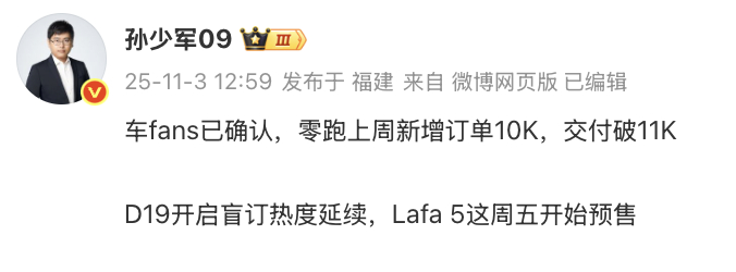 零跑10月销量突破7万台!上周新增订单10K,交付破11K