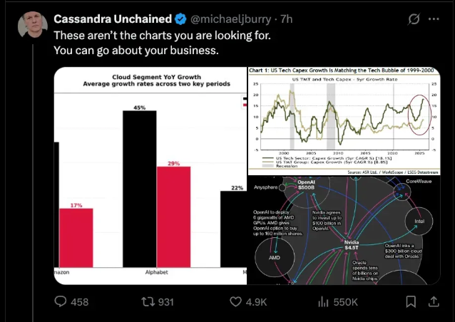 而新易盛Q3财报稍有不及预计即大跌,也体现了高位博弈的残酷性。联想到“大空头”的观点:AI投资的增长远超实际需求的增长,潜在风险不可低估。