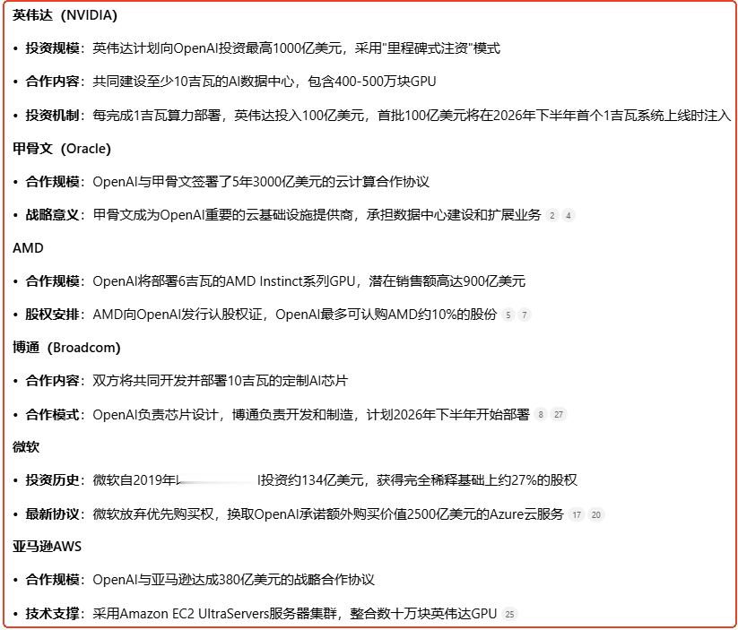 我们这两周也数次表达了关注:OpenAI把英伟达、甲骨文、微软、AMD、亚马逊、博通等行业龙头一个个串了起来,长袖善舞!
