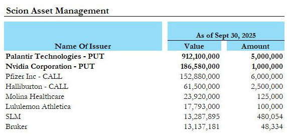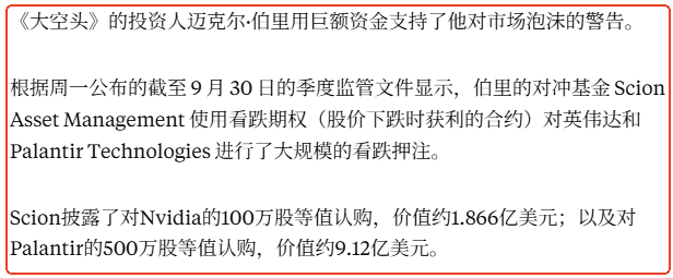 三季度末他旗下的对冲基金,以80%的仓位买了英伟达和Palantir(注:AI应用商,年度涨幅170%+)两只AI龙头股的看跌衍生品,颇有冒天下之大不韪的感觉!