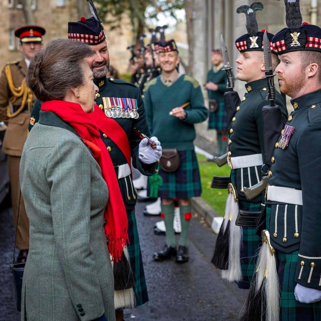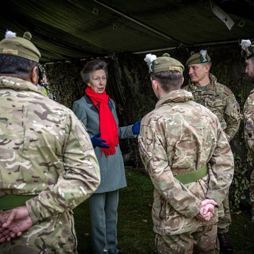 2025年10月30日,安妮长公主在苏格兰佩尼库克访问格伦科斯兵营,并与苏格兰皇家兵团第二营见面🏴