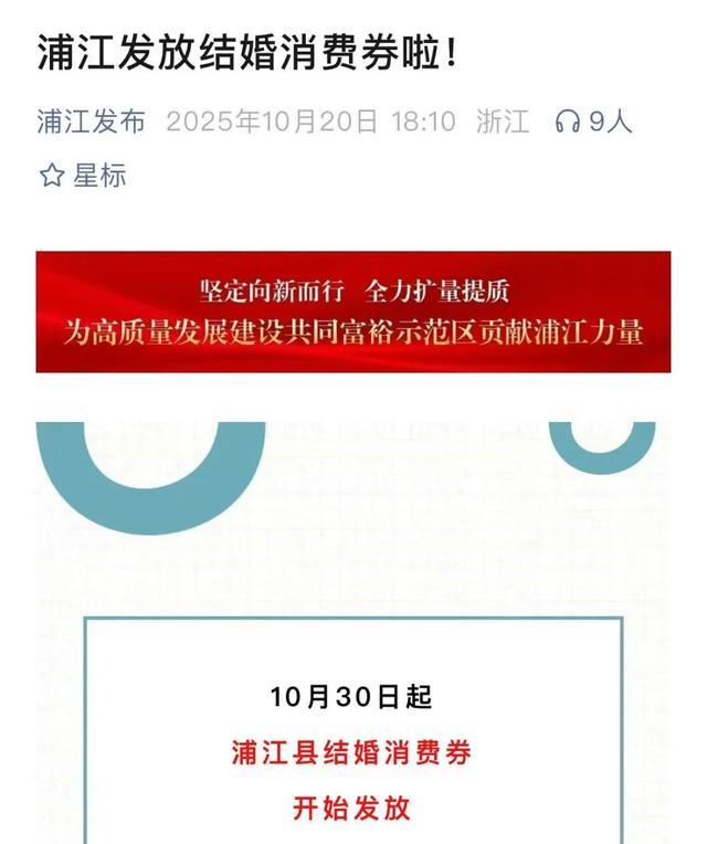 此前,浙江多地向新婚夫妇发放结婚消费券。