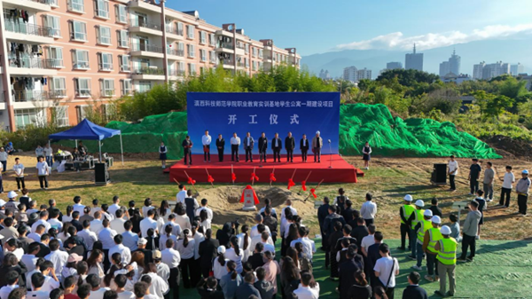 10月31日,滇西科技师范学院举行职业教育实训基地学生公寓一期建设项目开工仪式。