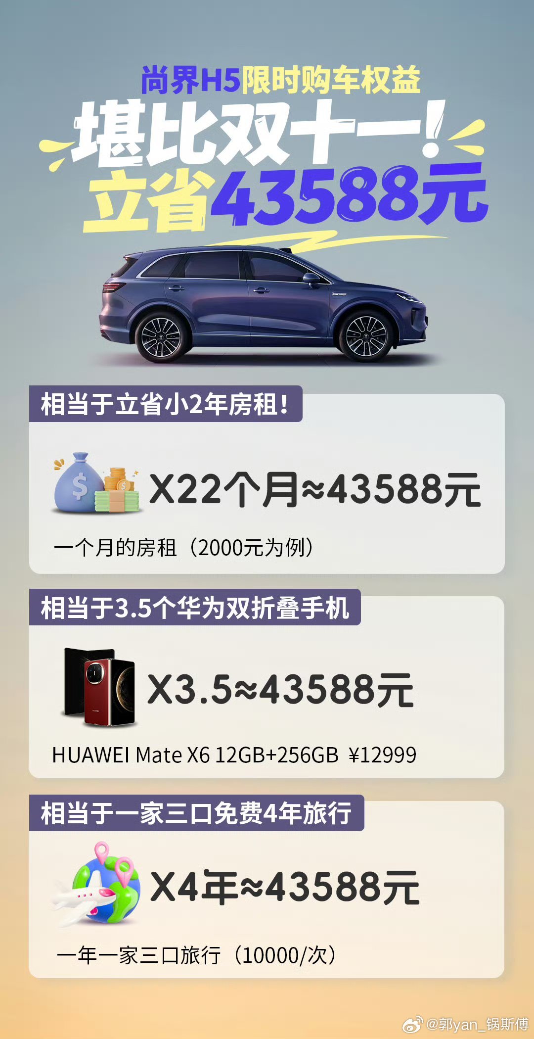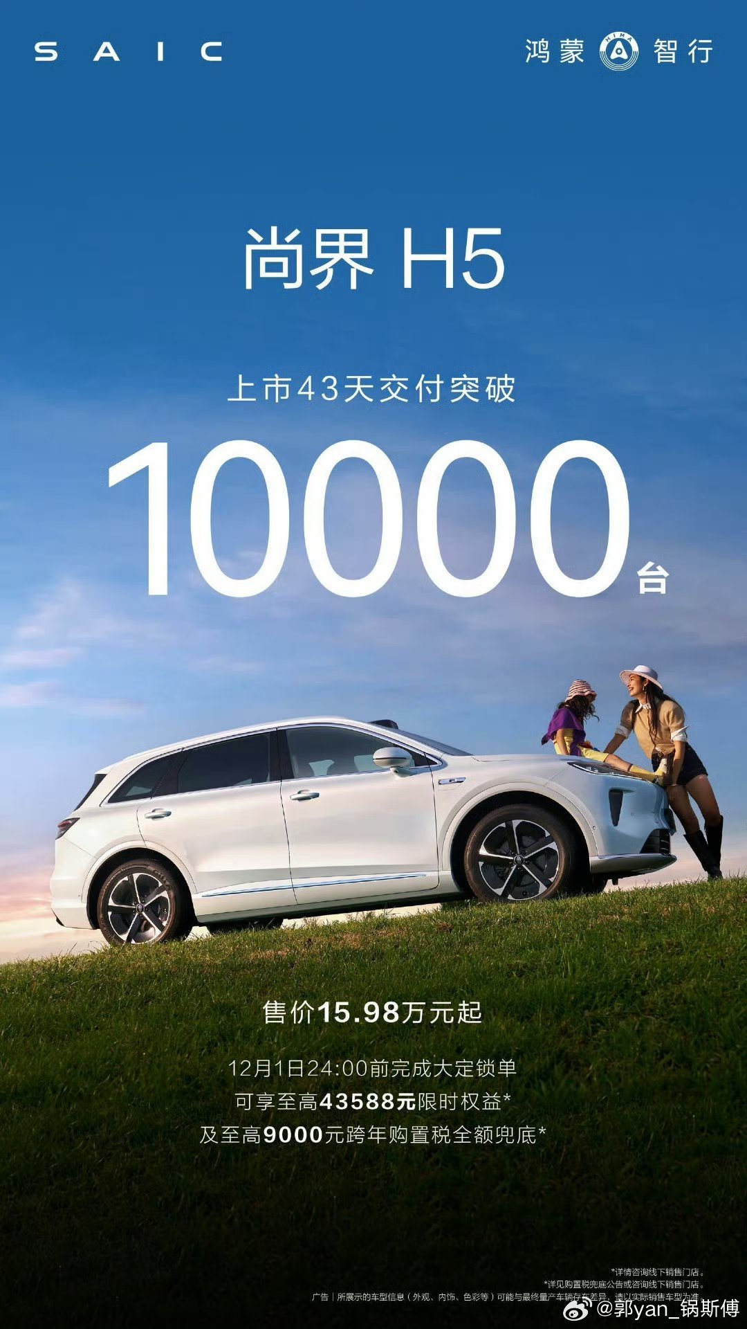 43天累计交付破1万,刷新该品牌交付速度纪录,现实是9月售出1901辆…尚界h5