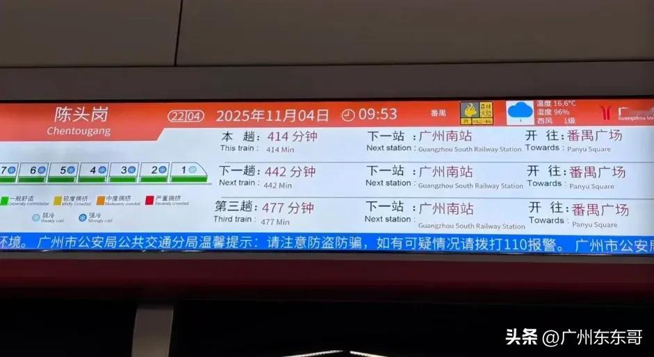 最后两个车站实现三权移交,广州地铁22号线后通段离开通越来越近了! 近日,随着芳村站、西塱站举行了三权移交仪式,也宣告22号线后通段土建工程基本完工,陈头岗站至芳村站即将进入试运营阶段。 目前,全线车站正在进行内部装饰,原有站点也在开始更换站点导视图。 根据电子站牌显示,后通段或已开始空载跑图,全程大约用时半个钟。 种种迹象表明,广州地铁22号线后通段年底开通已经是没比较稳了,番禺芳村两地也将进入半小时生活圈。