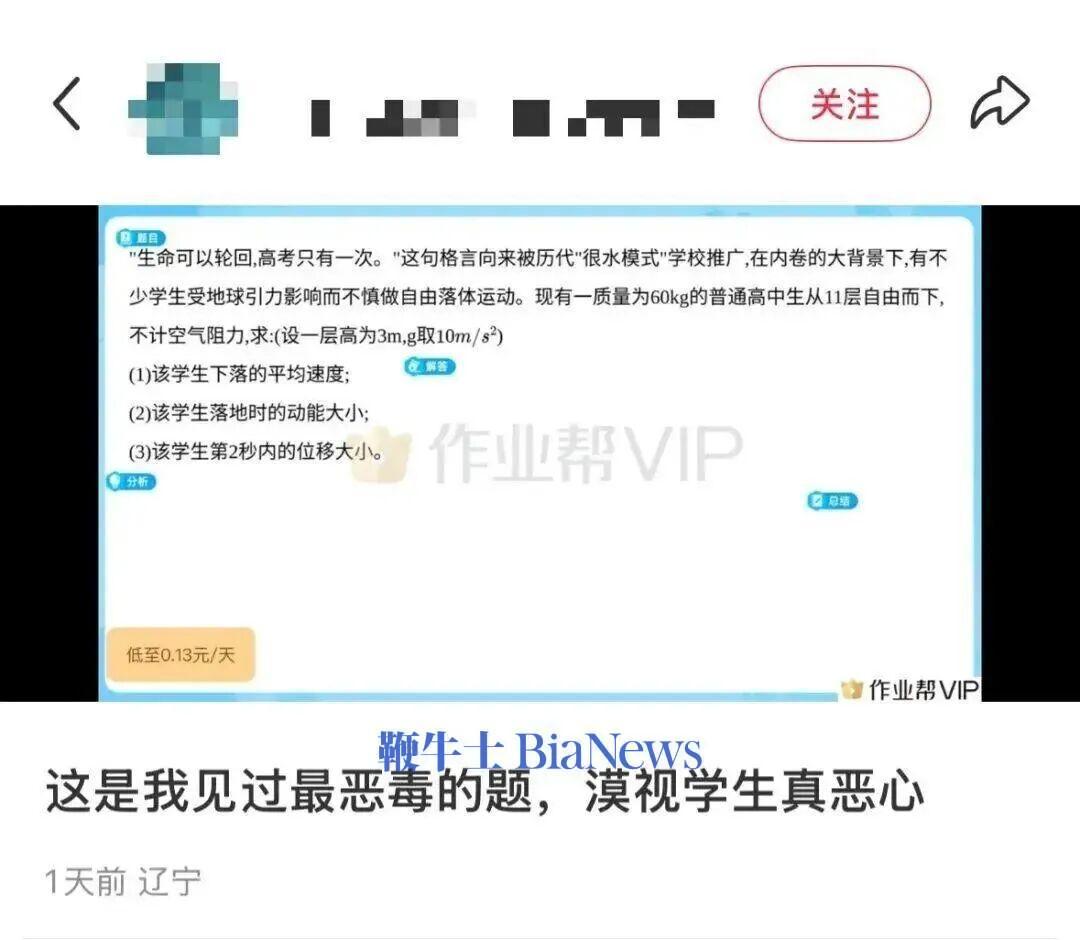 18、用学生跳楼出题,作业帮回应:涉事题目已下架
