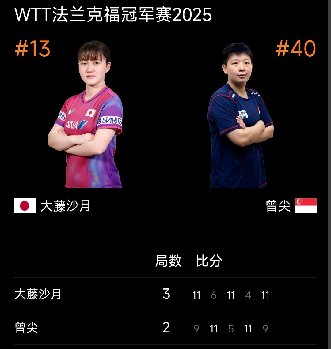 大藤沙月、伊藤美诚晋级16强丨法兰克福冠军赛,女单首轮比赛,赛事2号种子伊藤美诚