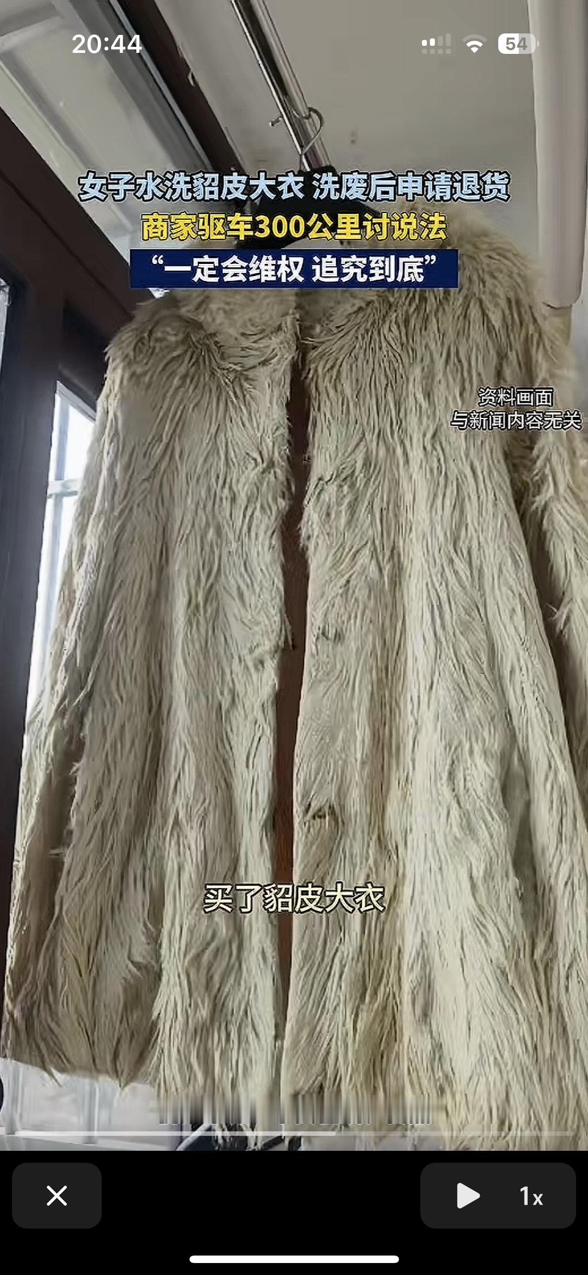 这样的店主太较真了,早晚关门 一位女生在网上买了貂皮大衣后用洗衣机洗了又退货