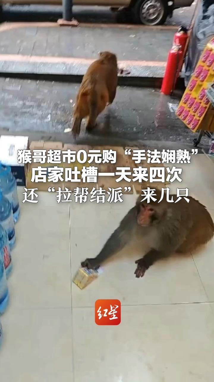 11月3日,贵州一店家发布猴子结伴在自家商店抢食的视频,店家表示自己及其周边店铺都经历过类似情况。先来一只猴子探路,隔一段时间带一大帮猴子来,就拿一些面包零食类食物。