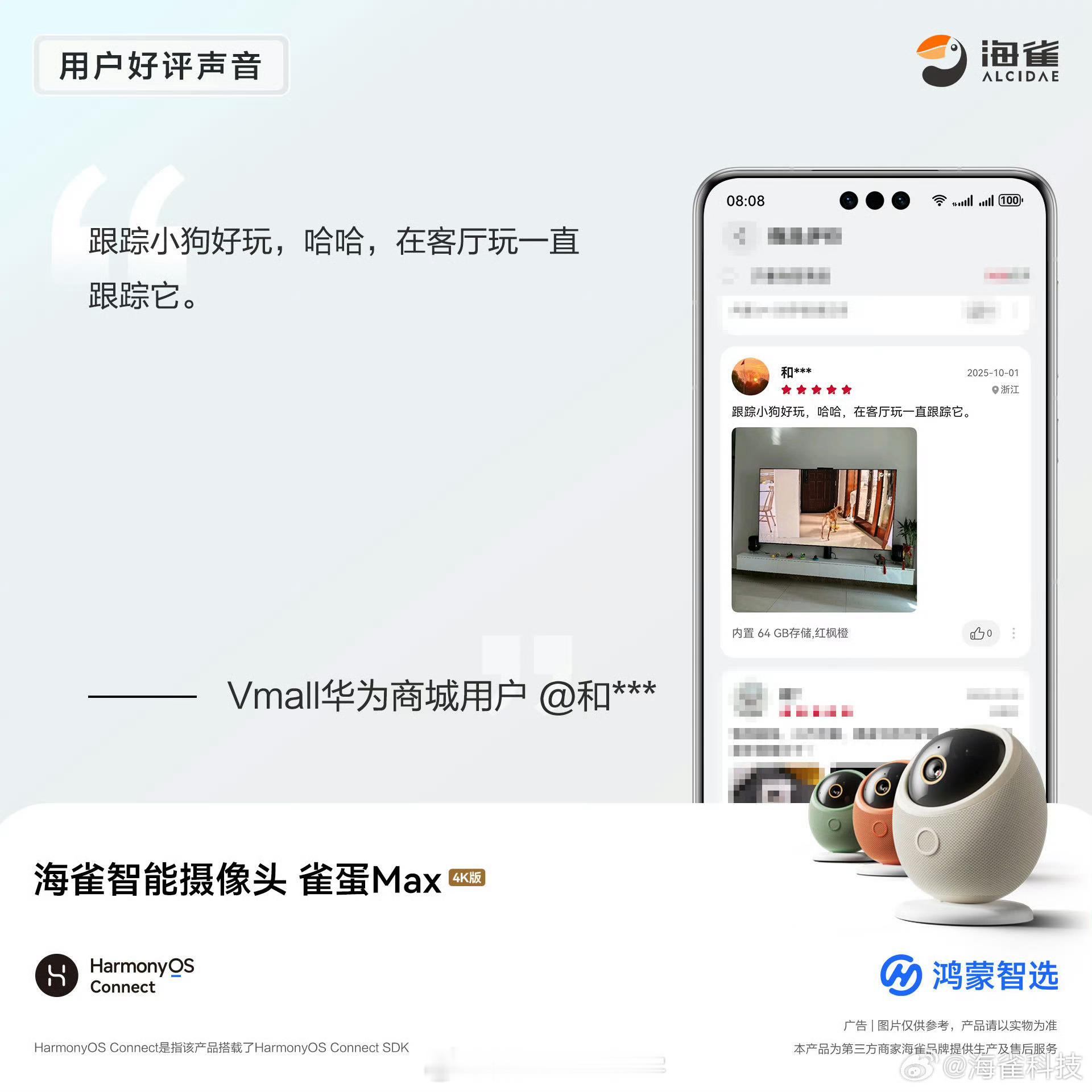 👉雀蛋Pro/Max:4K画质+智能追踪,宠物跑跳全程跟拍不跟丢;鸿蒙生态直连,不用额外下APP,操作贼丝滑~