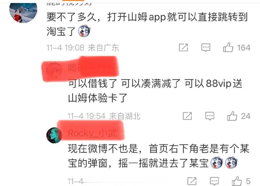 对此,有网友调侃称:「要不了多久,打开山姆app就可以直接跳转到淘宝了」