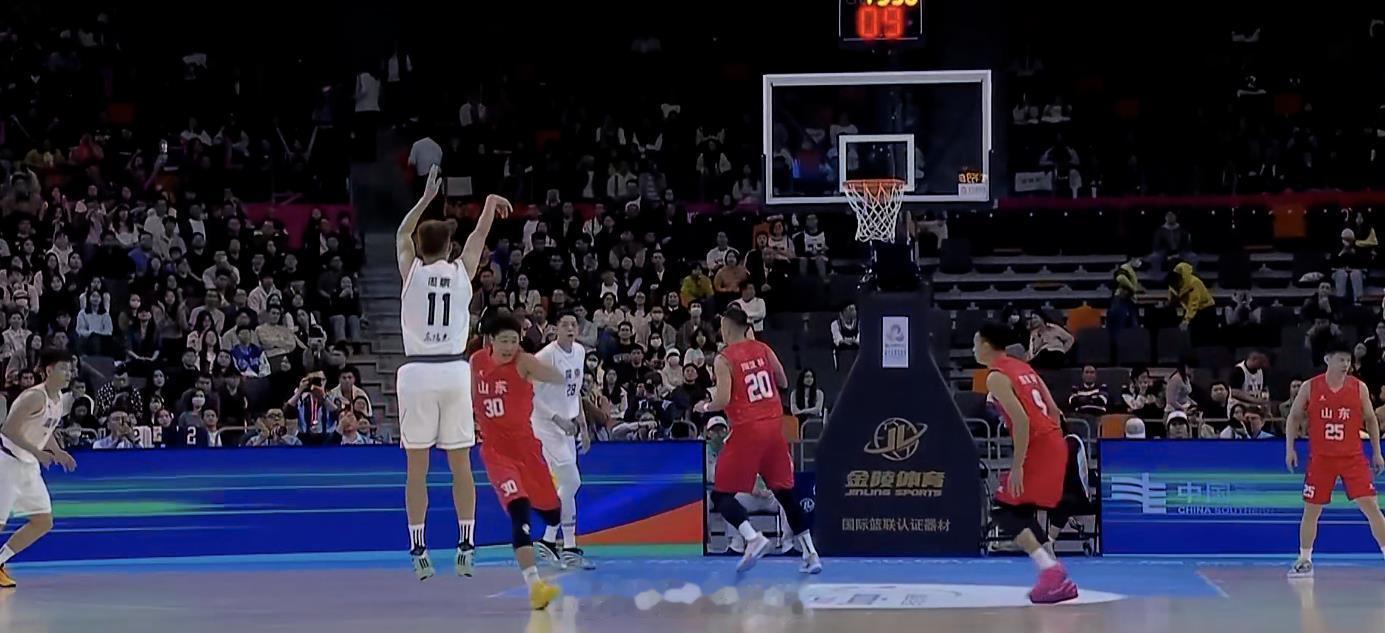第十五届全运会 广东男篮是三道杠赞助啊,场上三个哈登9:胡明轩、周鹏、沈梓捷!