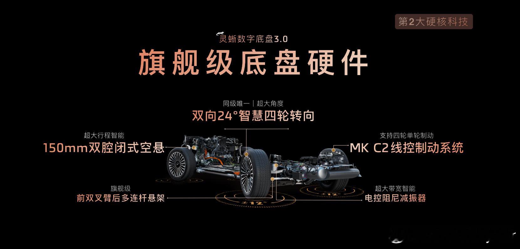 底盘操控是智己 LS9 的一大亮点。它搭载灵蜥数字底盘 3.0,配备双向 24° 四轮转向技术。这使得车辆在市区掉头、停车时非常灵活,即使是新手司机也能轻松驾驭,让大六座 SUV 拥有超越传统五座 SUV 的驾控体验,开起来远比传统大车灵活。