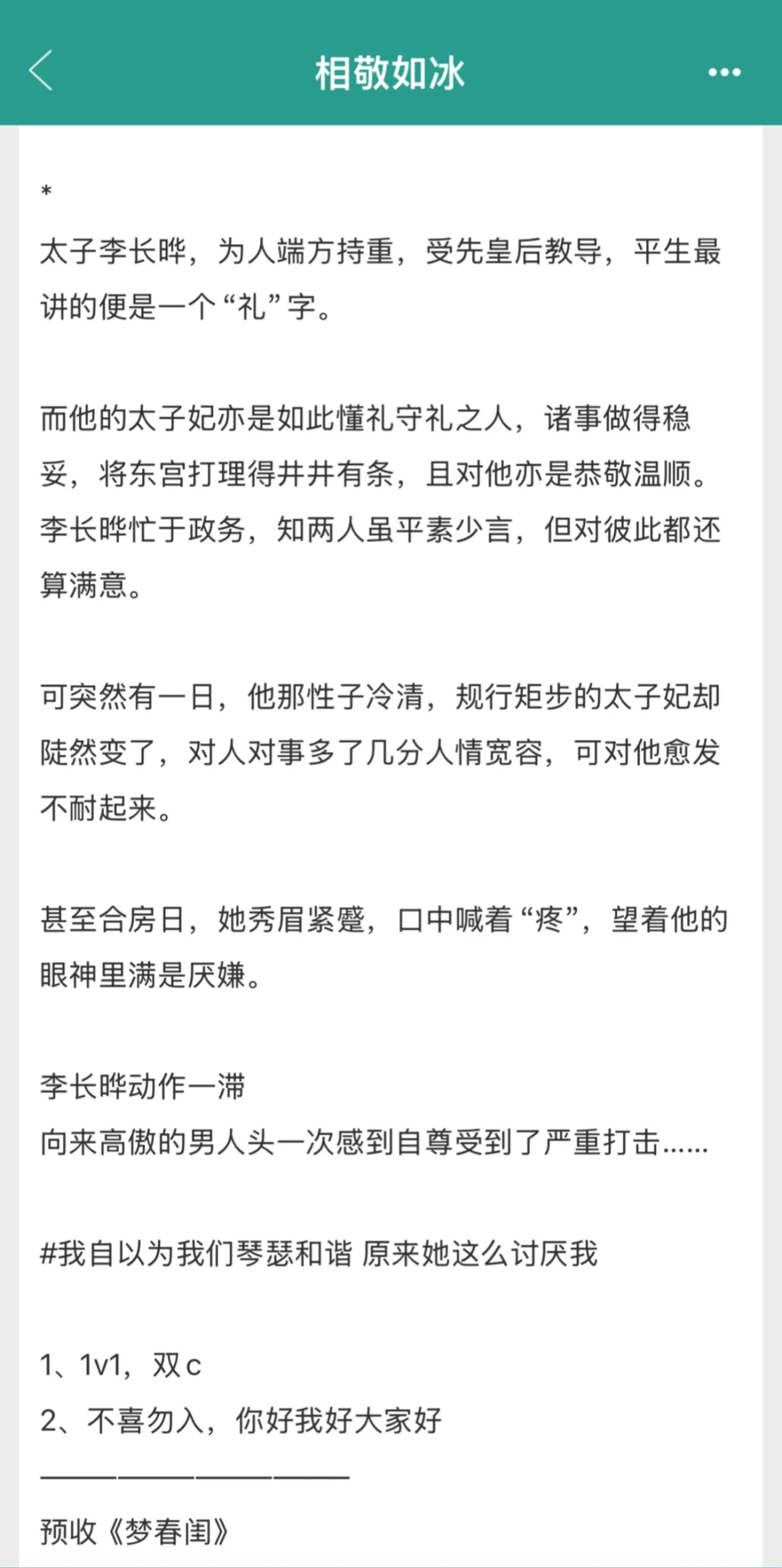 可突然有一日,他那性子冷清,规行矩步的太子妃却陡然变了,对人对事多了几分人情宽容,可对他愈发不耐起来。